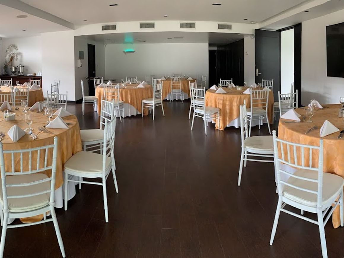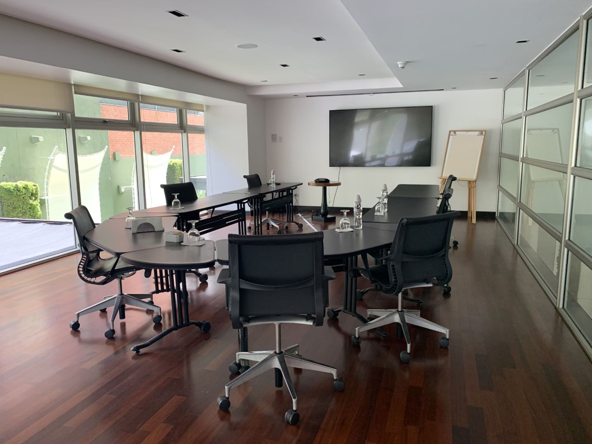 This intimate and functional venue is perfect for board meetings, workshops, or private sessions. It offers direct access to an outdoor pergola area and a service kitchenette, creating a comfortable, private environment ideal for small corporate events or exclusive meetings with personalized service.